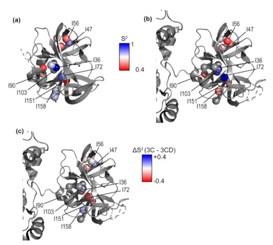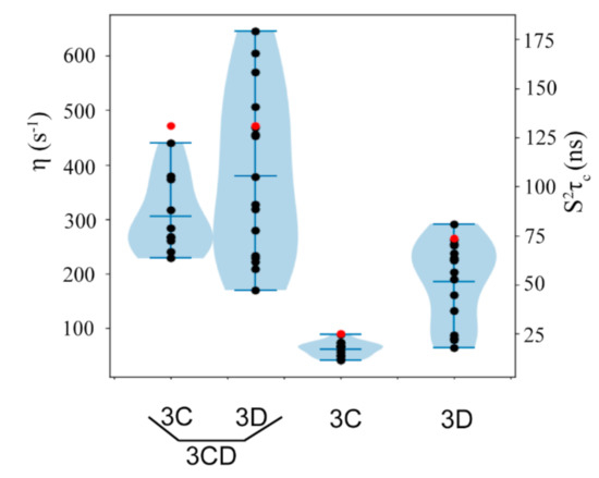 3.4. Conformational Dynamics of 3C on the Picosecond-Nanosecond Timescale