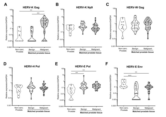 3.2. HERV-K Gag Expression Is Significantly Upregulated in Malignant, but Not Benign, Regions of Primary Prostate Tissue