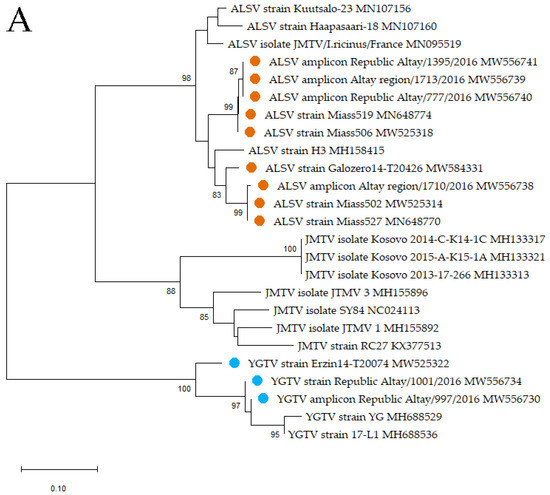 In the present study, we describe the distribution of ALSV and YGTV in Russia and their phylogenetic relationships.