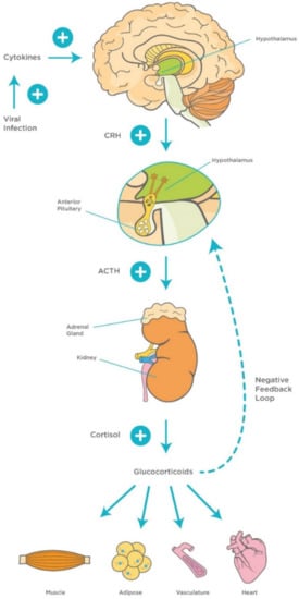 - Silverman, M.N.; Pearce, B.D.; Biron, C.A.; Miller, A.H. Immune modulation of the hypothalamic-pituitary-adrenal (HPA) axis during viral infection. Viral Immunol. 2005, 18, 41–78. [Google Scholar] [CrossRef] [PubMed]