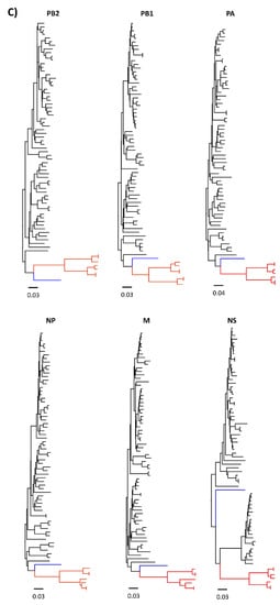 - Mena, I.; Nelson, M.I.; Quezada-Monroy, F.; Dutta, J.; Cortes-Fernandez, R.; Lara-Puente, J.H.; Castro-Peralta, F.; Cunha, L.F.; Trovao, N.S.; Lozano-Dubernard, B.; et al. Origins of the 2009 H1N1 influenza pandemic in swine in Mexico. Elife 2016, 5, e16777. [Google Scholar] [CrossRef]