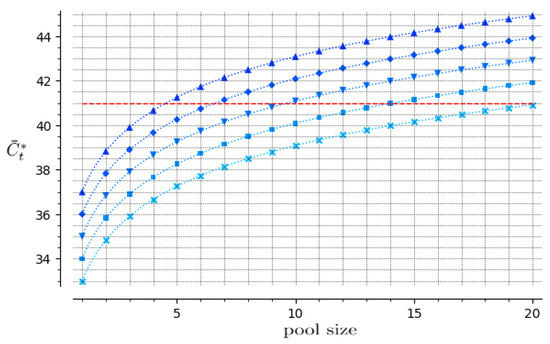 - If the optimal pool size under the economic viewpoint, as stated in Reference [11], is greater than that maximal admissible pool size, adopt that maximal value; otherwise, employ the optimal size.