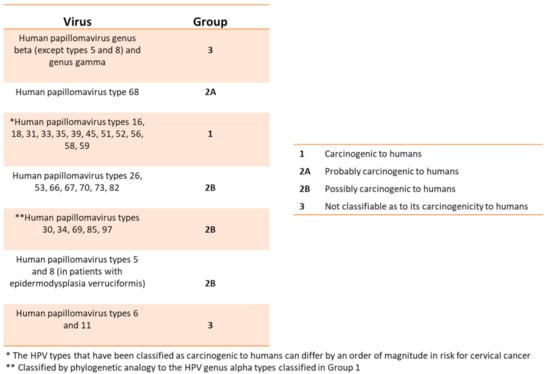 - IARC Working Group on the Evaluation of Carcinogenic Risks to Humans. Human Papillomaviruses (IARC Monographs on the Evaluation of Carcinogenic Risks to Humans, No. 90.); International Agency for Research on Cancer: Lyon, France, 2007. Available online: https://www.ncbi.nlm.nih.gov/books/NBK321770/ (accessed on 20 January 2021).