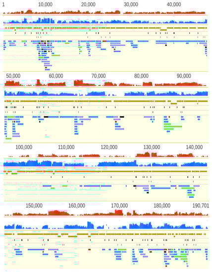 - Moldován, N.; Tombácz, D.; Szűcs, A.; Csabai, Z.; Balázs, Z.; Kis, E.; Molnár, J.; Boldogkői, Z. Third-generation Sequencing Reveals Extensive Polycistronism and Transcriptional Overlapping in a Baculovirus. Sci. Rep. 2018, 8, 8604. [Google Scholar] [CrossRef]