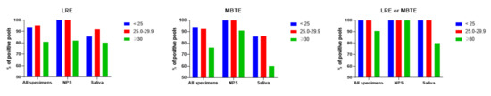 | Saliva (n = 60) b | 53 (88.3) b | 49 (81.7) c | 0.424 |