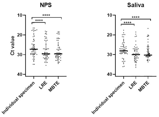 - Barat, B.; Das, S.; De Giorgi, V.; Henderson, D.K.; Kopka, S.; Lau, A.F.; Miller, T.; Moriarty, T.; Palmore, T.N.; Sawney, S.; et al. Pooled Saliva Specimens for SARS-CoV-2 Testing. J. Clin. Microbiol. 2020, 59. [Google Scholar] [CrossRef] [PubMed]