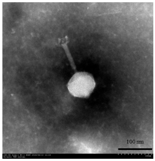 Morphology of phage PN09 observed using transmission electron microscopy.