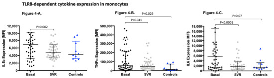 3.4. TLR8-Dependent Cytokine Expression Significantly Changes after Sustained Virological Response