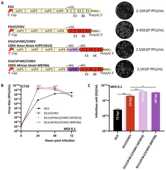 3.5. Development of a Novel EILV-Based Vaccine Candidate against ZIKV and CHIKV