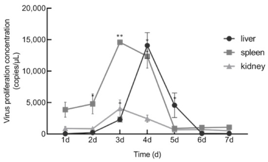 - Wang, T.; Li, J.L.; Lu, L.Q. Quantitative in vivo and in vitro characterization of co-infection by two genetically distant grass carp reoviruses. J. Gen. Virol. 2013, 94, 1301–1309. [Google Scholar] [CrossRef]