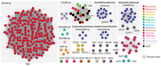 - Rojas, M.R.; Macedo, M.A.; Maliano, M.R.; Soto-Aguilar, M.; Souza, J.O.; Briddon, R.W.; Kenyon, L.; Rivera Bustamante, R.F.; Zerbini, F.M.; Adkins, S.; et al. World Management of Geminiviruses. Annu. Rev. Phytopathol. 2018, 56, 637–677. [Google Scholar] [CrossRef]