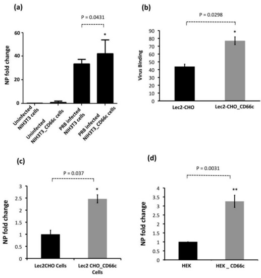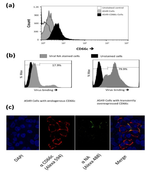 3.1.1. Overexpression of CD66c on Human Lung Cell Surface Resulted in Increased Virus Binding
