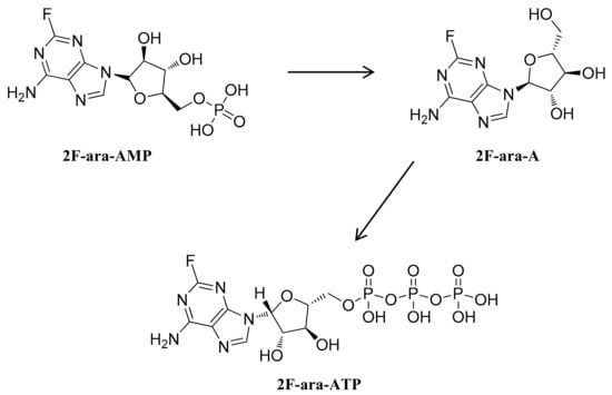 - Malspeis, L.; Grever, M.R.; Staubus, A.E.; Young, D. Pharmacokinetics of 2-F-ara-A (9-beta-D-arabinofuranosyl- 2-fluoroadenine) in cancer patients during the phase I clinical investigation of fludarabine phosphate. Semin. Oncol. 1990, 17 (Suppl. S8), 18–32. [Google Scholar]