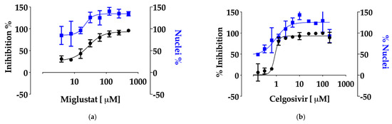 3.2. Dissection of Miglustat Antiviral Activity by Time of Addition Experiments