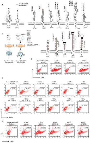 7. Murakami, T.; Carmona, N.; Ono, A. Virion-incorporated PSGL-1 and CD43 inhibit both cell-free infection and transinfection of HIV-1 by preventing virus–cell binding. Proc. Natl. Acad. Sci. USA 2020, 117, 8055–8063. [Google Scholar] [CrossRef]