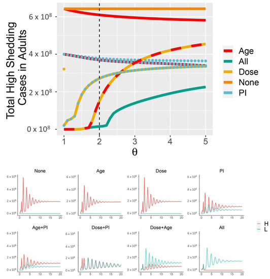 | High-shedding infected adults, children | 1, 0 | |