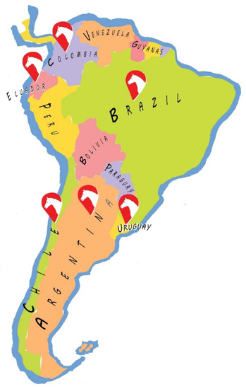 | Uruguay | H3N8—pre-divergent | [26,44] | |