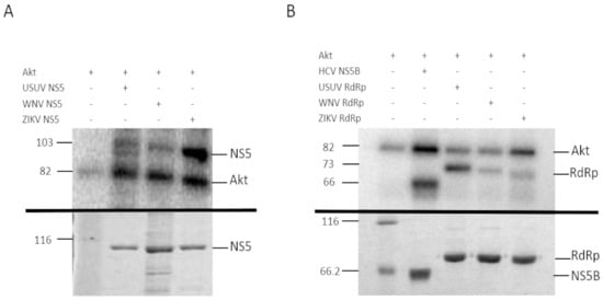 3.1. Flavivirus NS5 Proteins Are Phosphorylated by Human Akt