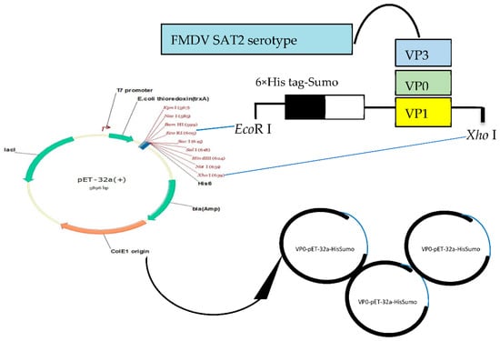 The construction of the His-SUMO fused three recombinant structural proteins of SAT2-FMDV serotype in pET-32a expression vector.