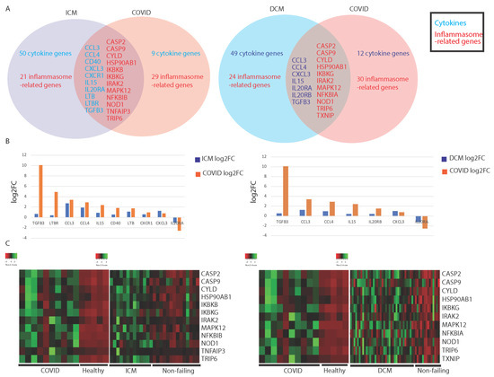 3.1.1. Similarities in Immune-Associated Gene Dysregulation in COVID-19 and Cardiomyopathy