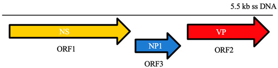 - ICTV—International Committee on Taxonomy of Viruses. Available online: https://talk.ictvonline.org/ictv-reports/ictv_online_report/ssdna-viruses/w/parvoviridae (accessed on 4 March 2021).