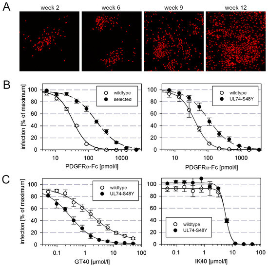3.1. Selection of an AD169 Mutant with Decreased Sensitivity to the Entry Inhibitor PDGFRα-Fc