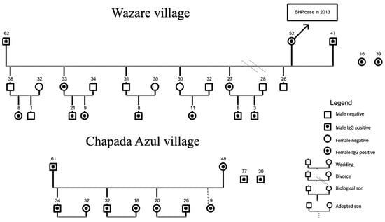 With regard to villages, Bacaval village, the most populous village of the region with the highest number of participants enrolled in the study, presented only five seropositive residents. In Wazare village, in which 100% of the residents joined the study, 14 serum-reactive individuals (Figure 2) were found. This village is the only one with a confirmed HCPS case (2013) in the Haliti–Paresí territory.