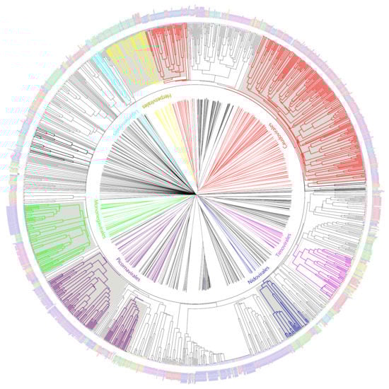 - Powell, S.; Forslund, K.; Szklarczyk, D.; Trachana, K.; Roth, A.; Huerta-Cepas, J.; Gabaldón, T.; Rattei, T.; Creevey, C.; Kuhn, M.; et al. eggNOG v4.0: Nested orthology inference across 3686 organisms. Nucleic Acids Res. 2014, 42, D231-9. [Google Scholar] [CrossRef]