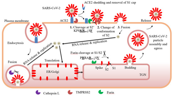 - Tang, T.; Jaimes, J.A.; Bidon, M.K.; Straus, M.R.; Daniel, S.; Whittaker, G.R. Proteolytic Activation of SARS-CoV-2 Spike at the S1/S2 Boundary: Potential Role of Proteases beyond Furin. ACS Infect Dis. 2021, 7, 264–272. [Google Scholar] [CrossRef]