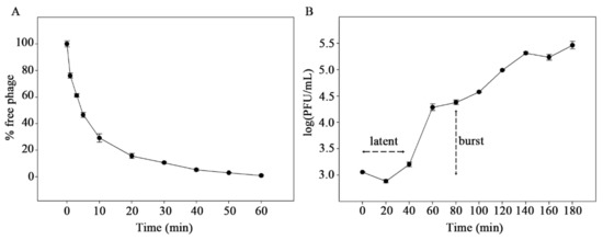2.5. Adsorption and One-Step Growth Curve