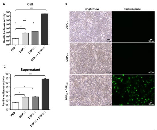 - Nakane, S.; Matsuda, Z. Dual Split Protein (DSP) Assay to Monitor Cell-Cell Membrane Fusion. Methods Mol. Biol. 2015, 1313, 229–236. [Google Scholar] [PubMed]