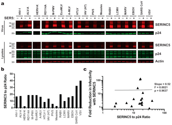 Linear regression analysis was used to measure correlation between SERINC5 incorporation and the average SERINC5-restriction.