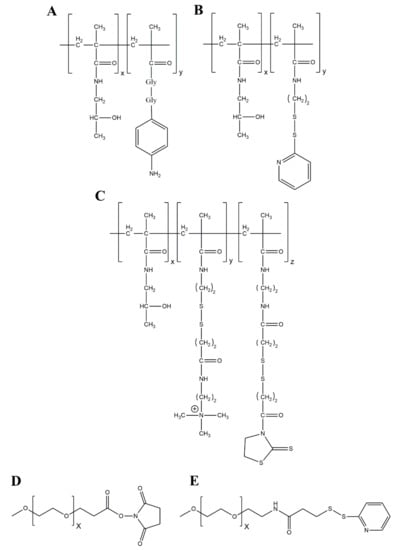 - Šubr, V.; Ulbrich, K. Synthesis and properties of new N-(2-hydroxypropyl)methacrylamide copolymers containing thiazolidine-2-thione reactive groups. React. Funct. Polym. 2006, 66, 1525–1538. [Google Scholar] [CrossRef]