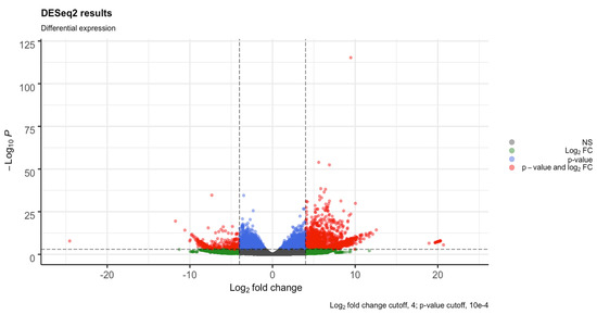 - Love, M.I.; Huber, W.; Anders, S. Moderated estimation of fold change and dispersion for RNA-seq data with DESeq2. Genome Biol. 2014, 15, 550. [Google Scholar] [CrossRef]