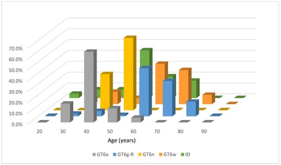 Percentages of age distribution of HCV GT 6 subtypes. ID, indeterminate.