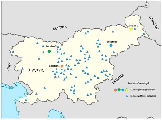 - Bacandritsos, N.; Granato, A.; Budge, G.; Papanastasiou, I.; Roinioti, E.; Caldon, M.; Falcaro, C.; Gallina, A.; Mutinelli, F. Sudden deaths and colony population decline in Greek honey bee colonies. J. Inverteb. Pathol. 2010, 105, 335–340. [Google Scholar] [CrossRef]