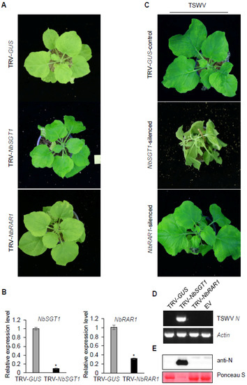 - Qian, X.; Xiang, Q.; Yang, T.Q.; Ma, H.Y.; Ding, X.S.; Tao, X.R. Molecular co-chaperone SGT1 is critical for cell-to-cell movement and systemic infection of tomato spotted wilt virus in Nicotiana benthamiana. Viruses 2018, 10, 647. [Google Scholar] [CrossRef] [PubMed] [Green Version]