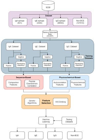 - Manavalan, B.; Govindaraj, R.G.; Shin, T.H.; Kim, M.O.; Lee, G. IBCE-EL: A New Ensemble Learning Framework for Improved Linear B-Cell Epitope Prediction. Front. Immunol. 2018, 9, 1695. [Google Scholar] [CrossRef] [Green Version]