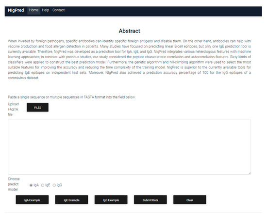 Tung, C.-H.; Chang, Y.-S.; Chang, K.-P.; Chu, Y.-W. NIgPred: Class-Specific Antibody Prediction for Linear B-Cell Epitopes Based on Heterogeneous Features and Machine-Learning Approaches. Viruses 2021, 13, 1531. https://doi.org/10.3390/v13081531