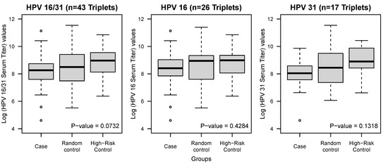 Gradissimo A, Shankar V, Wiek F, St. Peter L, Studentsov Y, Nucci-Sack A, Diaz A, Pickering S, Schlecht NF, Burk RD. Anti-HPV16 Antibody Titers Prior to an Incident Cervical HPV16/31 Infection. Viruses. 2021; 13(8):1548. https://doi.org/10.3390/v13081548