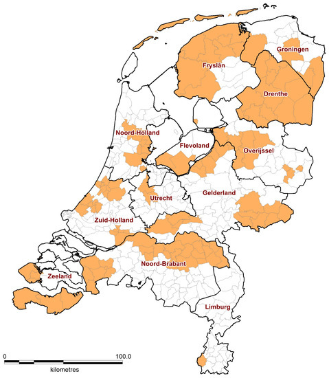 - Centraal Bureau voor de Statistiek (Statistics Netherlands). Available online: https://www.cbs.nl/en-gb/dossier/coronavirus-crisis-cbs-figures/regional-impact-of-covid-19 (accessed on 5 August 2021).