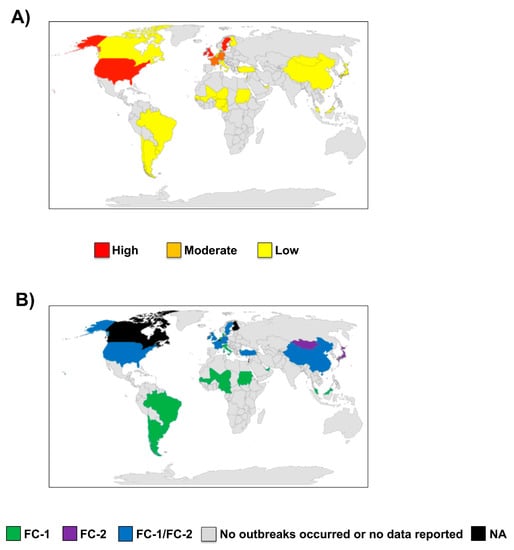 - Vincent, A.; Awada, L.; Brown, I.; Chen, H.; Claes, F.; Dauphin, G.; Donis, R.; Culhane, M.; Hamilton, K.; Lewis, N.; et al. Review of influenza A virus in swine worldwide: A call for increased surveillance and research. Zoonoses Public Health 2014, 61, 4–17. [Google Scholar] [CrossRef] [PubMed]