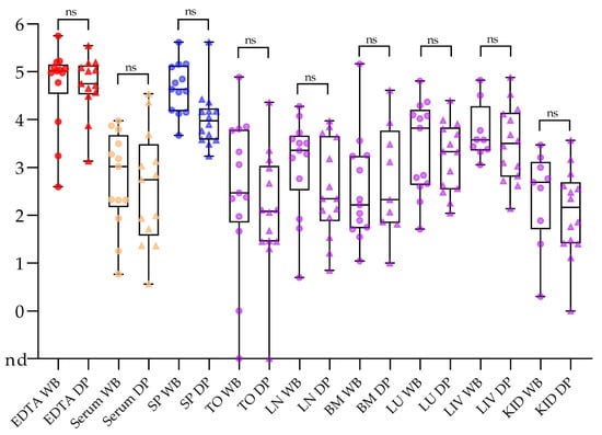 - Michaud, V.; Gil, P.; Kwiatek, O.; Prome, S.; Dixon, L.; Romero, L.; Le Potier, M.F.; Arias, M.; Couacy-Hymann, E.; Roger, F.; et al. Long-term storage at tropical temperature of dried-blood filter papers for detection and genotyping of RNA and DNA viruses by direct PCR. J. Virol. Methods 2007, 146, 257–265. [Google Scholar] [CrossRef] [PubMed]