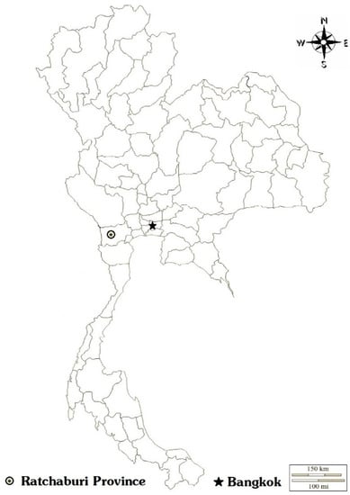 Participating Schools in Ratchaburi province, Thailand, 2006–2009. The circle indicates the location of schools, and the star indicates the location of the Faculty of Tropical Medicine, Mahidol University (Bangkok).