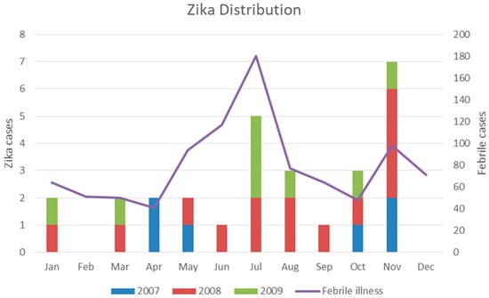 - Ruchusatsawat, K.; Wongjaroen, P.; Posanacharoen, A.; Rodriguez-Barraquer, I.; Sangkitporn, S.; Cummings, D.A.T.; Salje, H. Long-term circulation of Zika virus in Thailand: An observational study. Lancet Infect. Dis. 2019, 19, 439–446. [Google Scholar] [CrossRef] [Green Version]