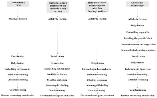 - Skepper, J.N. Immunocytochemical strategies for electron microscopy: Choice or compromise. J. Microsc. 2000, 199, 1–36. [Google Scholar] [CrossRef] [PubMed] [Green Version]