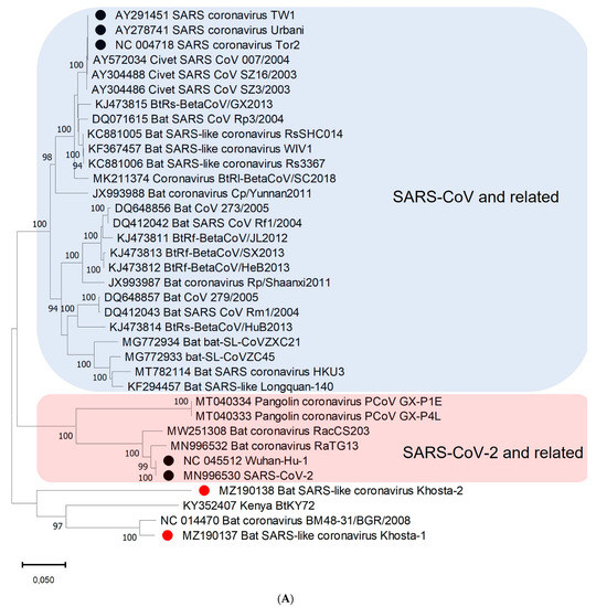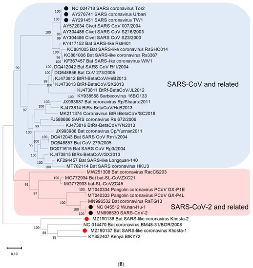 - Boni, M.F.; Lemey, P.; Jiang, X.; Lam, T.T.Y.; Perry, B.W.; Castoe, T.A.; Rambaut, A.; Robertson, D.L. Evolutionary origins of the SARS-CoV-2 sarbecovirus lineage responsible for the COVID-19 pandemic. Nat. Microbiol. 2020, 5, 1408–1417. [Google Scholar] [CrossRef]