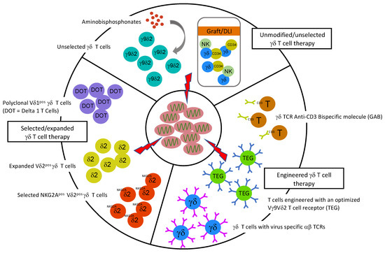 - Sebestyen, Z.; Prinz, I.; Dechanet-Merville, J.; Silva-Santos, B.; Kuball, J. Translating gammadelta (gammadelta) T cells and their receptors into cancer cell therapies. Nat. Rev. Drug Discov. 2020, 19, 169–184. [Google Scholar] [CrossRef]
