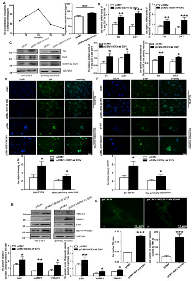3.6. HERV-W ENV Increases the Expression of Synaptic Proteins in DA Neurons