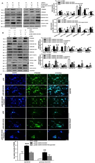 - Qin, C.; Li, S.; Yan, Q.; Wang, X.; Chen, Y.; Zhou, P.; Lu, M.; Zhu, F. Elevation of Ser9 phosphorylation of GSK3beta is required for HERV-W env-mediated BDNF signaling in human U251 cells. Neurosci. Lett. 2016, 627, 84–91. [Google Scholar] [CrossRef] [PubMed]